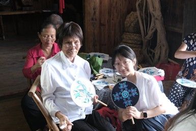 圖2.服務(wù)團(tuán)成員與繡娘學(xué)習(xí)圖片