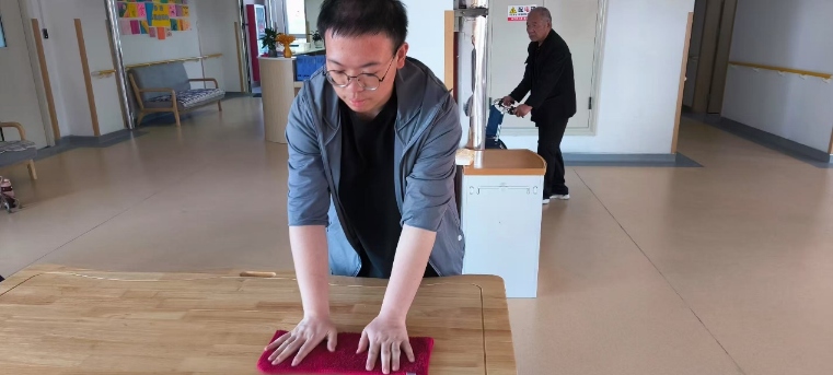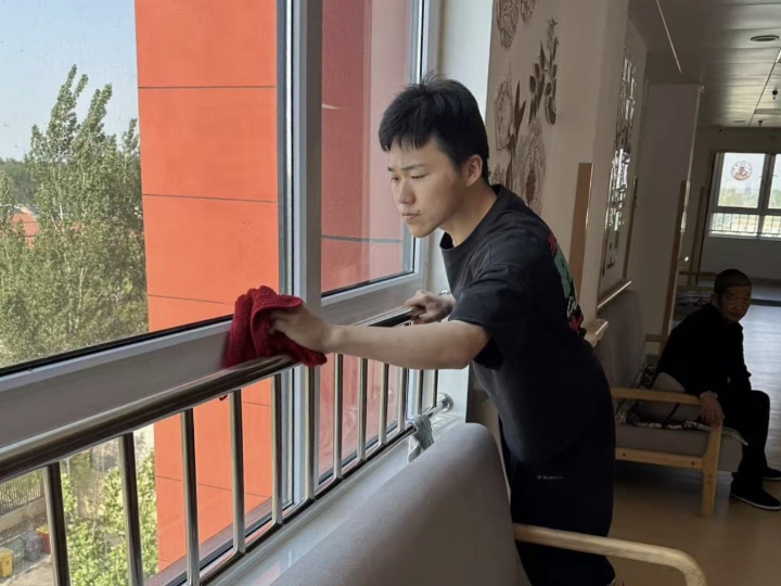 實踐團成員在前期準備工作中,實踐團成員同養老院的負責人了解了情況。實踐團成員們早早地來到了養老院,手持清潔工具,迅速投入到衛生清掃工作中。實踐團成員們認真打掃著養老院的每一個角落,仔細擦拭樓梯扶手,為老人們創造了一個更加整潔、舒適的生活環境。