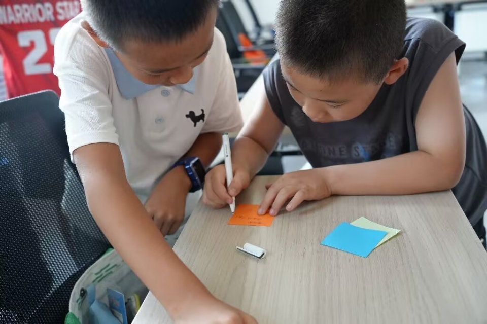 配音活動則充滿歡笑。孩子們為改編自《熊出沒》《哪吒》的反詐和環保動畫片段配音,在角色扮演中學習自我保護與環保知識。“成長有了雙倍的意義。”志愿者如是說。