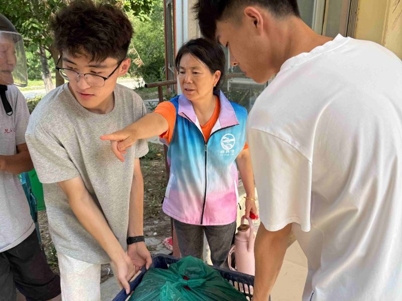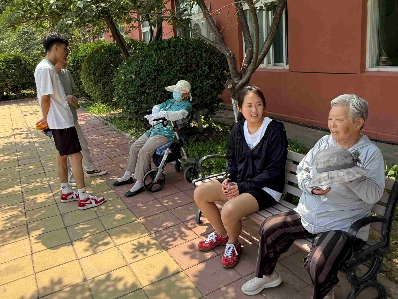 除了環境維護,成員們更注重與老人的互動交流。邵斌與文亞鑫走進老人中間,親切交談,耐心傾聽老人們講述過往經歷和日常生活點滴,用陪伴傳遞關懷。