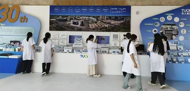 感悟創業艱辛:匠心筑夢長廊里的初心傳承 在“匠心筑夢”企業發展長廊,泛黃的創業手稿與智能化生產線影像形成鮮明對比。實踐團成員駐足創始人展區,聆聽著“一根導尿管改變命運”的創業故事:為打破國外壟斷,駝人團隊歷經8000余次試驗,終于研制出中國首條國產導尿管。墻上掛滿的獎章與專利證書,無聲訴說著“實業報國”的赤子情懷。這些珍貴的歷史資料讓醫學生們深刻體會到創業的艱辛與堅持,更領悟到科技創新背后那份執著的初心。