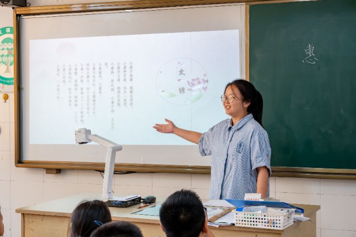 小暑節氣美育課上,“春雨驚春清谷天,夏滿芒夏暑相連……”二十四節氣歌悠揚響起,課程正式開啟。老師首先詳細介紹了小暑的歷史淵源,接著播放了科普視頻,生動展示了與小暑相關的詩句、避暑方法和豐富民俗。在知識問答環節,同學們踴躍參與,積極互動,進一步加深了對小暑節氣知識的認識。