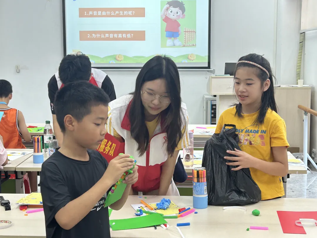 為貫徹落實(shí)“百千萬工程”教育部署,豐富基層兒童科學(xué)啟蒙內(nèi)容,2025年7月16日,華南師范大學(xué)物理學(xué)院四進(jìn)永和服務(wù)隊(duì)隊(duì)員熊梓伊走進(jìn)廣州市黃埔區(qū)永和社工服務(wù)站,開展主題為“吹出來的科學(xué):排笛手工+聲學(xué)探秘課”的趣味科普課程。本節(jié)課通過“動(dòng)手制作—激發(fā)好奇—理解原理”的循序設(shè)計(jì),引導(dǎo)小朋友在操作與感知中認(rèn)識(shí)聲音的生成過程,并以排笛為媒介完成一次科學(xué)與藝術(shù)的雙重探索。