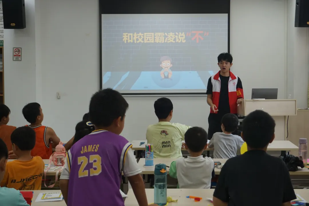 2025年7月16日,華南師范大學(xué)物理學(xué)院四進(jìn)永和服務(wù)隊成員黃子強在廣州市黃埔區(qū)永和街社工服務(wù)站開展了主題為“和校園霸凌說‘不’”的心理健康課程。通過情景模擬、互動教學(xué)等形式,讓小朋友們們深刻認(rèn)識霸凌危害,掌握應(yīng)對方法,共同筑牢反霸凌的防線。