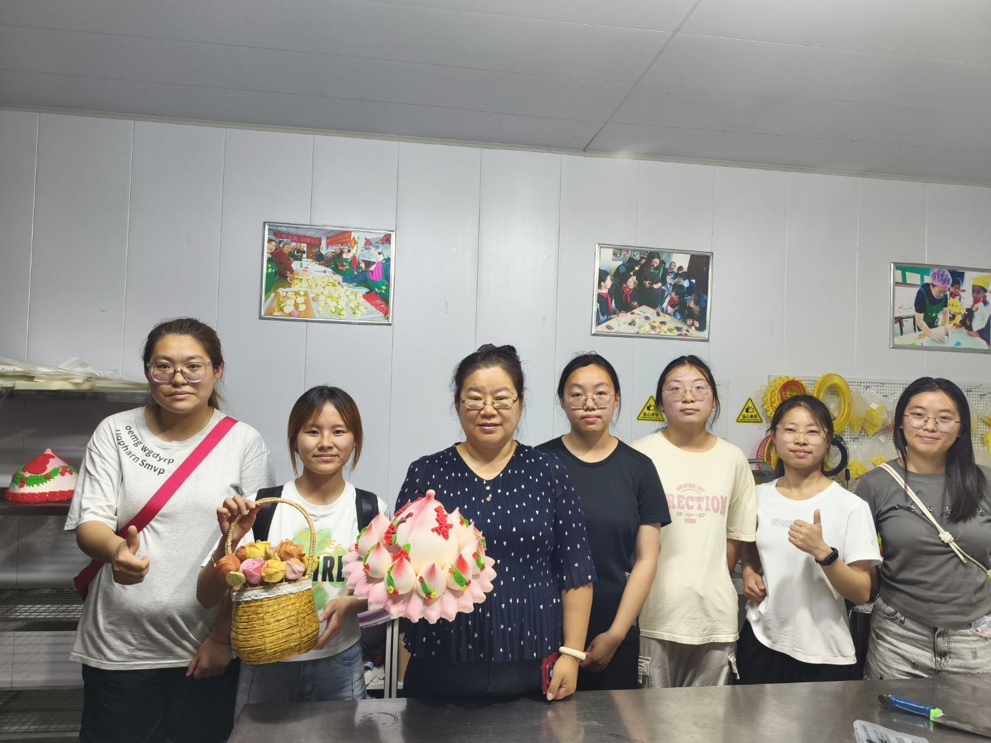 7月9日,實(shí)踐隊(duì)采訪了膠東花餑餑非遺傳承人蔡秉芬老師。在制作場(chǎng)地,隊(duì)員們了解到花餑餑以中筋面為主料,色彩取自天然果蔬汁,造型主要靠手工捏制,雖然部分字、花等形狀會(huì)借助模具,但手工才是核心。制作時(shí)間因復(fù)雜程度不同,從兩三小時(shí)到一兩天不等,醒面環(huán)節(jié)對(duì)酵母、溫濕度要求很高,直接影響著花餑餑的造型。與蔡老師交流傳承現(xiàn)狀時(shí),得知有大學(xué)畢業(yè)生等年輕人加入傳承隊(duì)伍,但推廣和銷(xiāo)售仍面臨困境。但花餑餑應(yīng)用場(chǎng)景廣泛,無(wú)論是生日宴、寶寶宴等傳統(tǒng)宴席,還是三八節(jié)、高考季等特殊節(jié)點(diǎn),都能以獨(dú)特造型傳遞美好祝福。并且銷(xiāo)售采取線上線下結(jié)合的方式,通過(guò)冷鏈冷凍保鮮,可保質(zhì)90天且不影響口感。