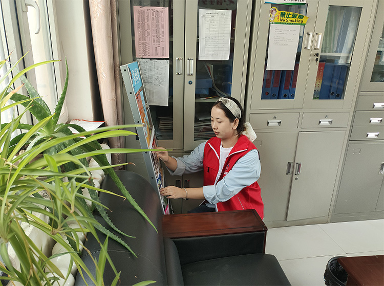 每天清晨,實踐團成員會拿起掃帚對村委會院子及周邊道路進行清掃。即使遇上悶熱天氣也未停下手中的活。午后,小廣場的健身器材旁總有她忙碌的身影,她用濕抹布仔細擦拭器材上的灰塵。