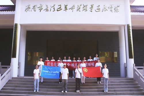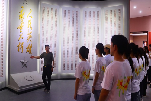 圖為實踐團成員于革命英雄事跡展覽館前合影。山東理工大學賈凱宜提供