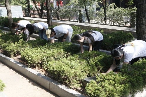 圖為實踐團成員開展陵園清潔與祭掃。山東理工大學林予淳提供