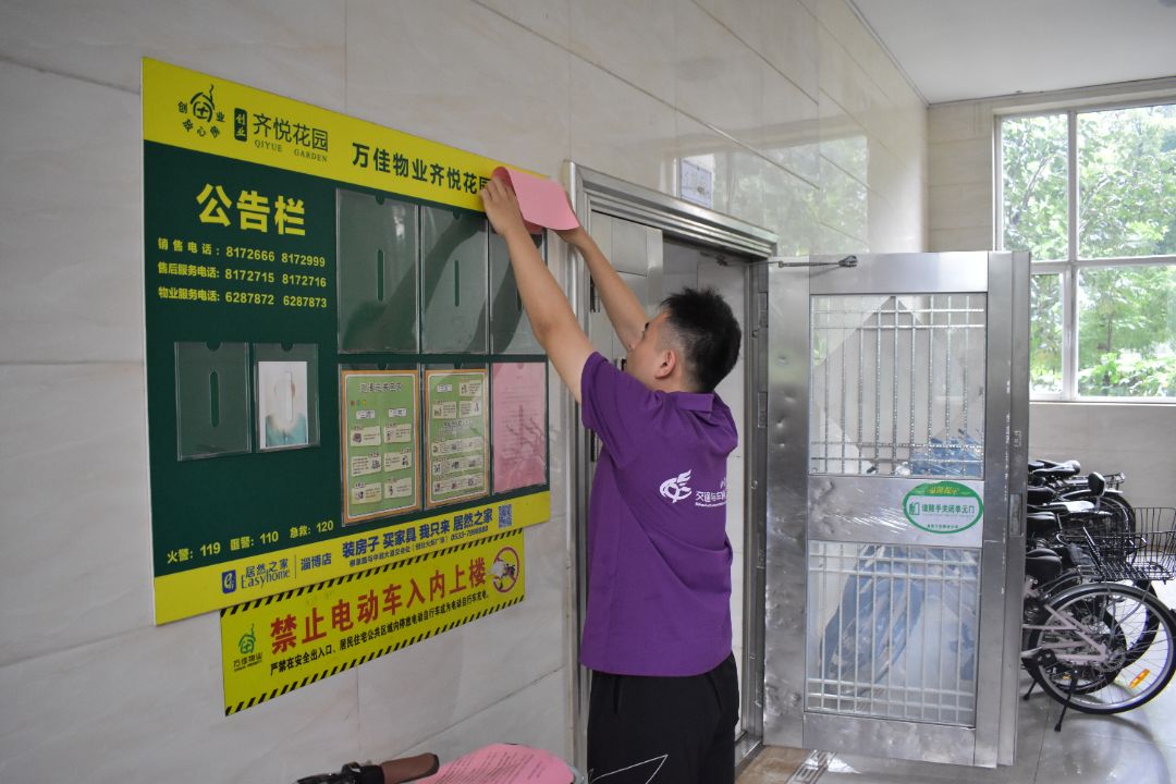 為更好地宣傳政府部門惠民政策,不斷關(guān)愛老年群體,以及促進(jìn)社會和諧穩(wěn)定,7月21日上午,“循夢而行”實(shí)踐團(tuán)繼續(xù)前往齊悅國際社區(qū),于樓道和電梯間的公告欄中幫助投放老年人意外險(xiǎn)和高齡津貼的通知。以細(xì)微之處出發(fā),為居民的日常生活提供便利,來更好地服務(wù)民生。