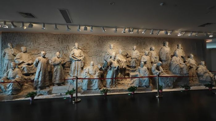 圖為雕塑名人墻,陳列了20位徽州名人,代表性人物有:清代著名經(jīng)濟學家、財政專家王茂蔭;新安畫派開辟創(chuàng)始人、史上唯一僧人畫師漸江先生;“中國鐵路之父”詹天佑等