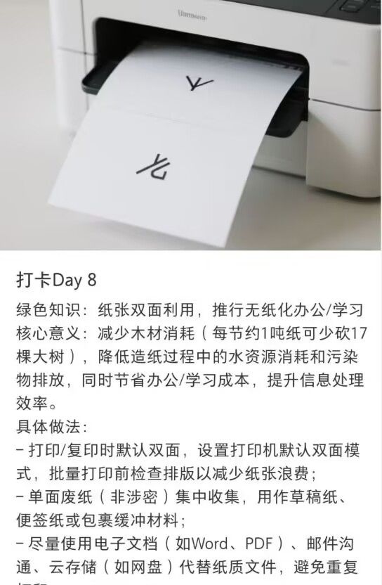 在傳播陣地上,青年學子敏銳捕捉時代脈搏,借助抖音、小紅書等新媒體平臺,將“低碳生活小貼士”轉化為高頻、輕量的知識碎片,持續浸潤公眾觀念,讓綠色理念如春風化雨,深入人心。實踐團成員劉晨希說到“我認為綠色知識打卡的終極價值不在于打卡數據,而在于能否成為個體走向可持續生活的第一塊跳板——當打卡停止時,真正的綠色習慣已悄然扎根。”