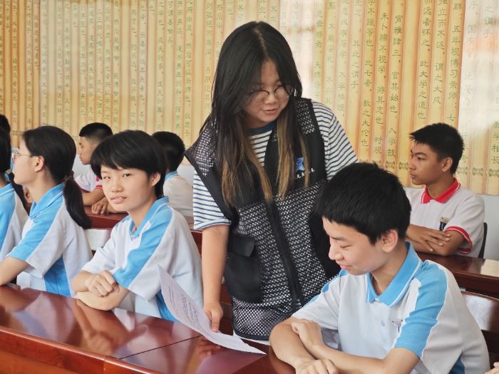 團隊成員高梓燁向?qū)W生系統(tǒng)介紹了人工智能的基本概念、發(fā)展歷程及其在學(xué)習(xí)、生活中的潛在應(yīng)用價值。講解著重強調(diào)智能工具的核心作用是輔助人類、放大創(chuàng)意靈感,而非簡單替代。講解結(jié)束后,團隊成員向在場學(xué)生分發(fā)了關(guān)于人工智能認知與應(yīng)用情況的調(diào)查問卷,學(xué)生們認真閱讀題目并完成了作答。