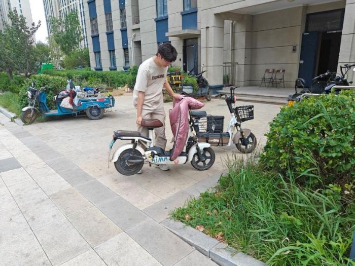 電動車秩序管理任務中,實踐團將占道停放的車輛統一歸置至充電區,矯正歪斜車輛并張貼規范停放示意圖,消除主干道通行障礙及充電安全隱患。