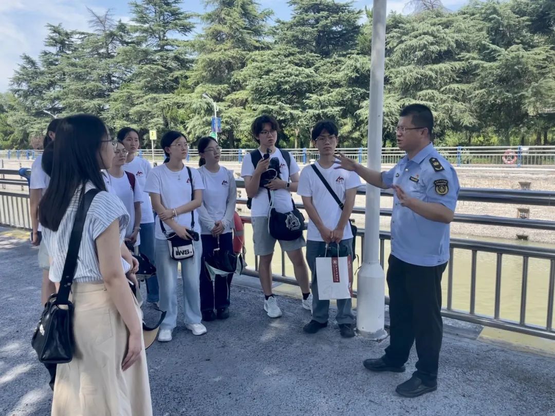 船舶有序過閘,貨輪接連啟航。大運(yùn)河的運(yùn)輸活力,在施橋船閘的日常運(yùn)轉(zhuǎn)中清晰可見。為了解大運(yùn)河航運(yùn)詳情,實(shí)踐團(tuán)前往蘇北航務(wù)管理處揚(yáng)州航務(wù)中心實(shí)地調(diào)研。施橋船閘作為京杭大運(yùn)河蘇北段的核心節(jié)點(diǎn),船閘的“忙碌”遠(yuǎn)超想象。據(jù)蘇北航務(wù)管理處負(fù)責(zé)人介紹,蘇北段運(yùn)河沿線10座船閘全年通過船舶約13-14萬艘,2024年貨物通過量達(dá)3.27億噸。這里不僅是“運(yùn)輸通道”,更是串聯(lián)起沿線工業(yè)、農(nóng)業(yè)、商貿(mào)的“經(jīng)濟(jì)血管”。蘇北航務(wù)管理處的實(shí)踐讓成員們深刻認(rèn)識到:運(yùn)河的“千年商脈”從未褪色,現(xiàn)代化的航運(yùn)管理,正持續(xù)為產(chǎn)業(yè)發(fā)展注入新動(dòng)能。