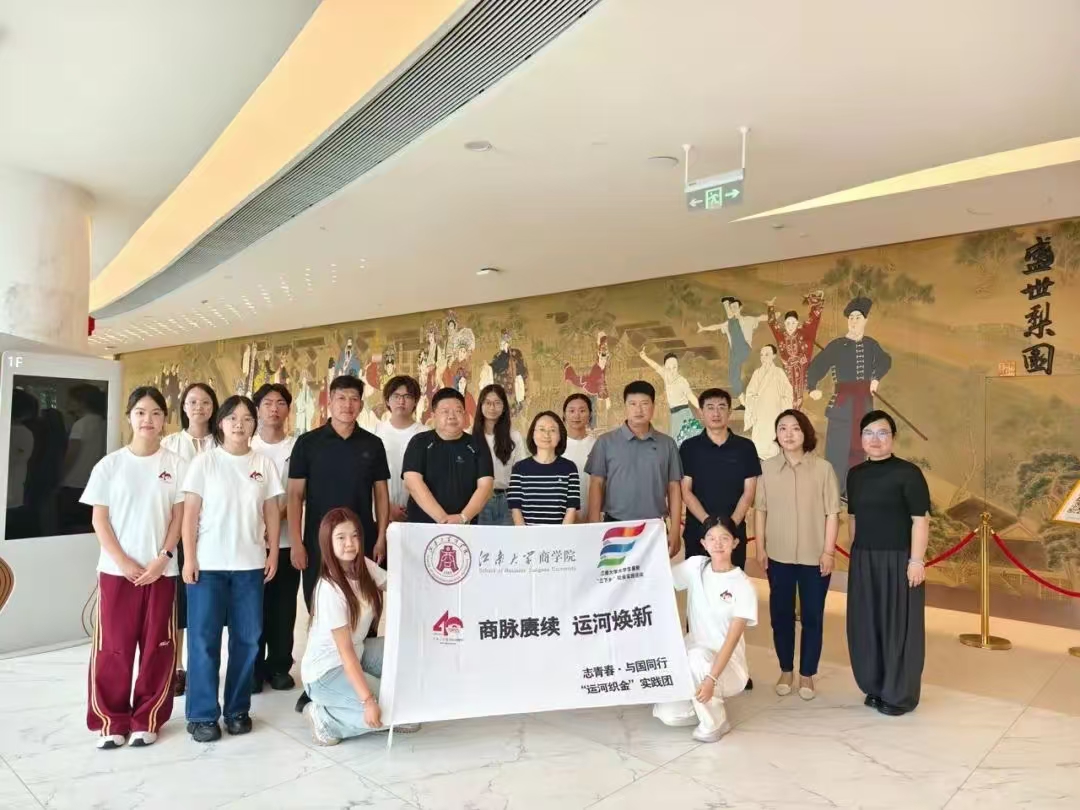 千年揚(yáng)州城,悠悠運(yùn)河水。從千年商脈的歷史回響到產(chǎn)業(yè)創(chuàng)新的現(xiàn)實(shí)圖景,江南大學(xué)商學(xué)院“志青春・與國同行”運(yùn)河織金實(shí)踐團(tuán)的揚(yáng)州之行,不僅是對運(yùn)河文化賦能產(chǎn)業(yè)的細(xì)致探尋,更是一場“文化根脈”與“發(fā)展動(dòng)能”的鮮活碰撞。成員們在船閘旁見證運(yùn)輸動(dòng)脈的繁忙,在企業(yè)里看見地理優(yōu)勢的轉(zhuǎn)化,在非遺館中觸摸技藝傳承的溫度,真切感受到了運(yùn)河與產(chǎn)業(yè)共生的蓬勃活力。