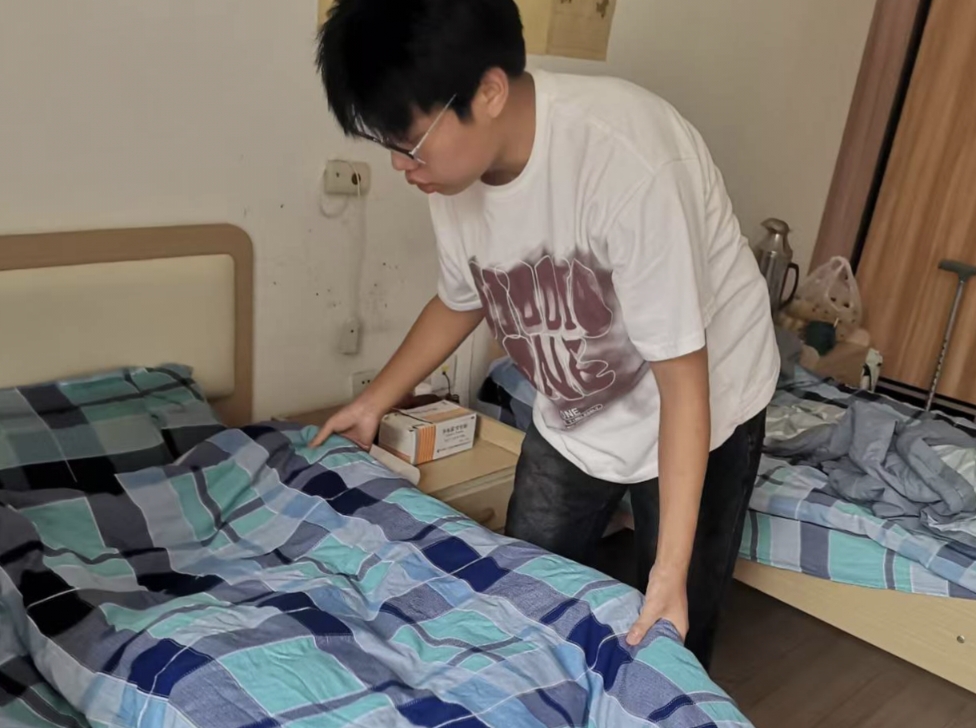 此外,還有隊員走進老人們的房間,幫助整理床鋪。他們將被褥鋪平疊好,整理好散落在床頭的物品,把房間收拾得井井有條,讓老人們的居住環境更加舒適。