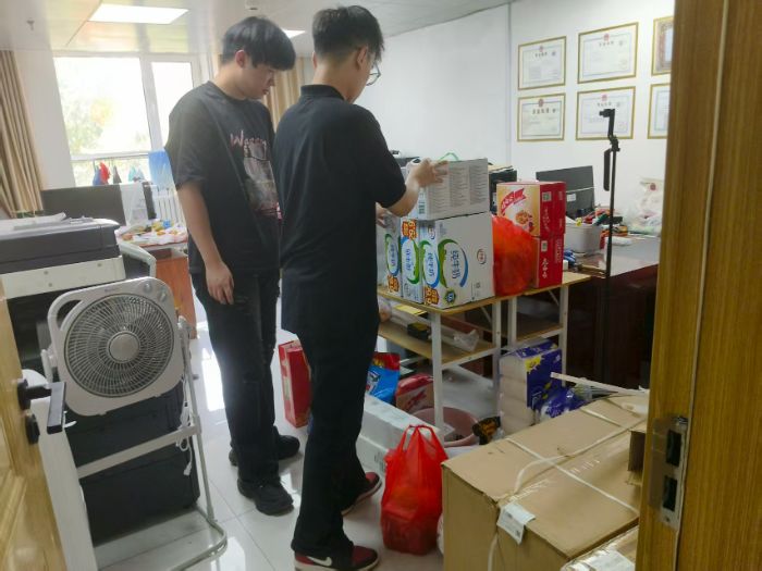 圖為實踐團成員范思宇與王家瑞整理營養品