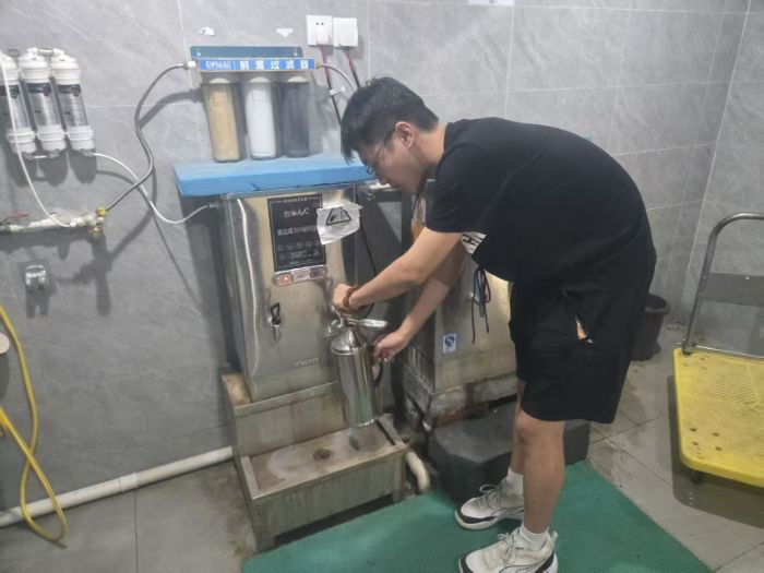 趙嘉寶和楊皓然在室內為老人接熱水、擦桌子。及時為老人的水杯續上熱水,確保老人們隨時有熱水飲用;同時,仔細擦拭桌子,保持桌面的干凈整潔,方便老人用餐和活動。這些看似微不足道的小事,卻體現了成員們對老人的細心照顧和貼心關懷。