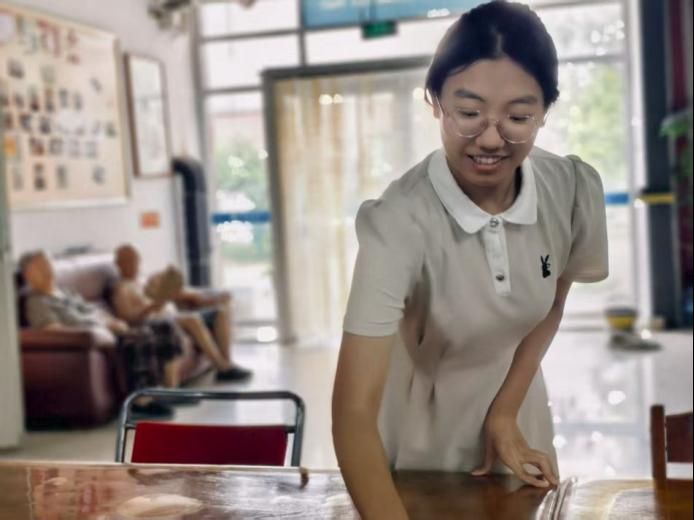 每日清晨,實踐團成員們便會推著行動不便的老人在康養中心的庭院內散心。他們小心翼翼地攙扶老人坐上輪椅,根據老人的身體狀況調整行進速度,時而為老人講解路邊盛開的花卉,時而回應老人關于天氣的詢問,讓老人們在清新的空氣中感受著陪伴的美好。