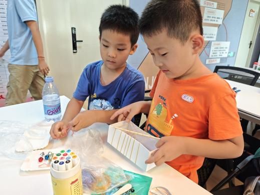 最后,實踐團成員帶領孩子們利用日常生活中的可回收材料親手制作簡易樂器。通過實踐理解垃圾分類的價值,感悟“廢物利用”的創新思維。活動中引導孩子將廢棄物品轉化為可發聲的環保打擊樂器或弦鳴樂器,讓環保行動與音樂創造同步發生。