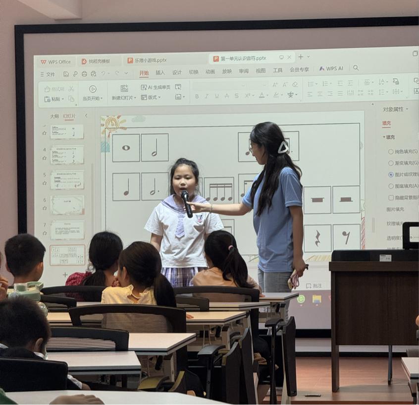 在合唱排練課正式開始前,老師特別設置了“歌曲展示”環(huán)節(jié),邀請孩子們主動上臺演唱自己熟悉的曲目。這一環(huán)節(jié)不僅為孩子們提供了展現(xiàn)自我的平臺,更在輕松的氛圍中拉近了彼此距離,為后續(xù)課程的開展奠定了良好基礎。