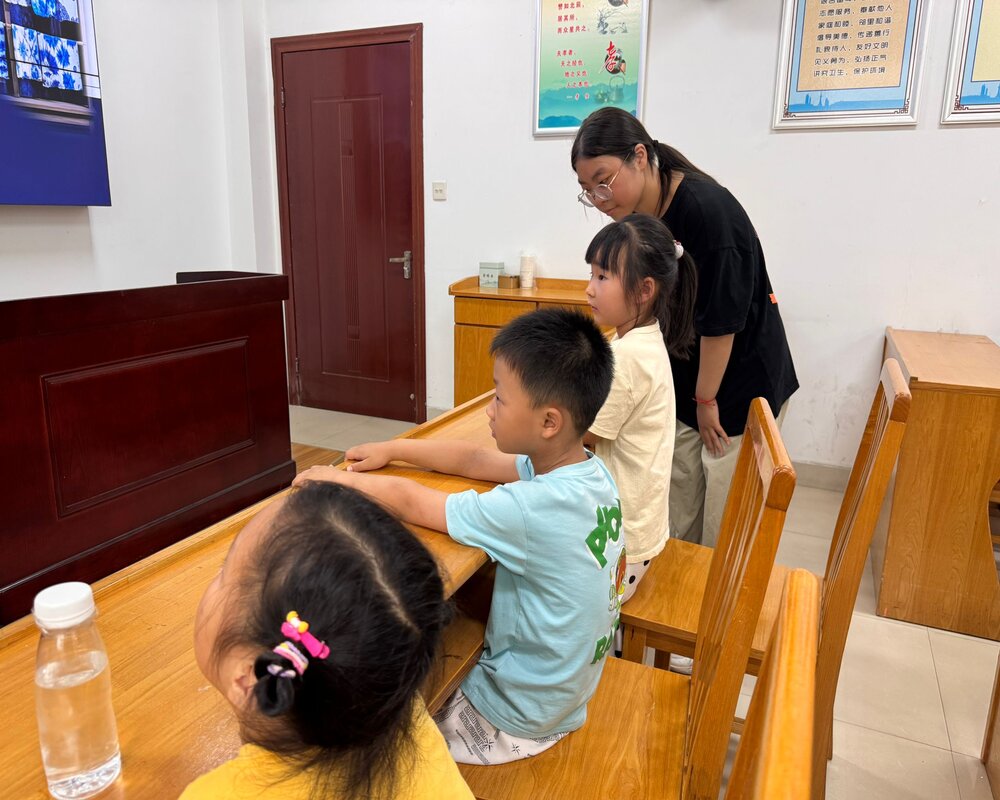 在 “扎染的前世今生” 環節開展前,志愿者團隊做了周密的策劃與籌備,編寫了貼合兒童認知的學習資料。他們以講故事的形式,向孩子們娓娓道來扎染的發展軌跡 —— 從秦漢時期 “纈染” 技藝的起源,到如今躋身國家級非物質文化遺產的歷程。當講到云南白族婦女沿用板藍根染布的傳統時,孩子們眼中閃爍著好奇與向往的光芒,志愿者們深切感受到文化傳承的種子已在孩子們心中悄然滋長。