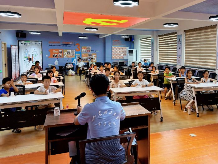 節奏敲響快樂,音樂聯通心靈。實踐活動的重頭戲之一是頗具趣味的“杯子舞”音樂教學。摒棄了枯燥的理論灌輸,將基礎音樂節奏融入游戲之中。孩子們人手一套色彩鮮艷的塑料杯,在眾音創益社會實踐團的耐心指導下,跟隨音樂的節拍,進行敲擊、翻轉、傳遞等一系列動作。從最初的手忙腳亂到后來的默契配合,清脆的杯擊聲與孩子們的歡笑聲交織成一曲獨特的交響樂。這不僅極大地激發了孩子們對音樂的興趣,讓他們在游戲中直觀感知了節奏、韻律與團隊協作的重要性,更鍛煉了他們的手腦協調能力和專注力。看著孩子們全神貫注、笑容洋溢的臉龐,“眾音創益”社會實踐團深切體會到創新教學方式的巨大魅力。