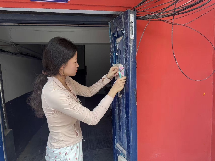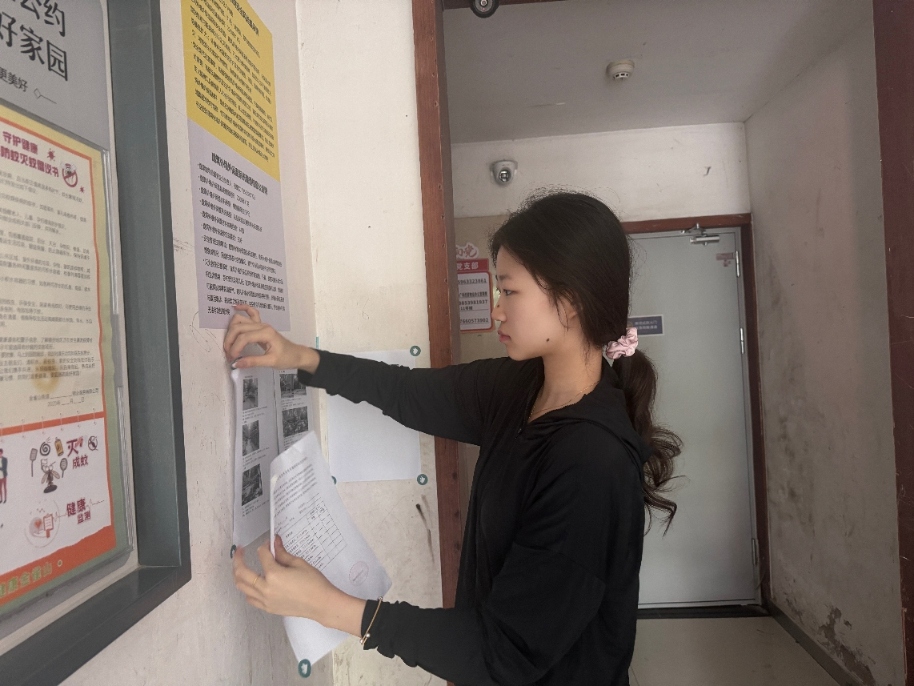 為讓居民更具有安全意識,實踐團成員推進社區安全治理行動。通過張貼安全知識宣傳單向居民宣傳安全知識,涵蓋消防安全、用電安全、防詐騙、交通安全等與居民生活息息相關的領域。宣傳單設計簡潔明了,以圖文結合的方式將復雜的安全知識轉化為易懂的小貼士,方便不同年齡段的人閱讀。