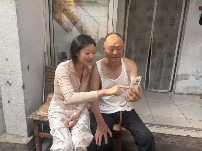 實踐團成員拜訪當地老人,教老年人使用智能手機。并給老年人觀看反詐視頻,講述真實案例,包括保健品詐騙、虛假投資等,以防老年人在互聯網上信息泄露,防止詐騙。
