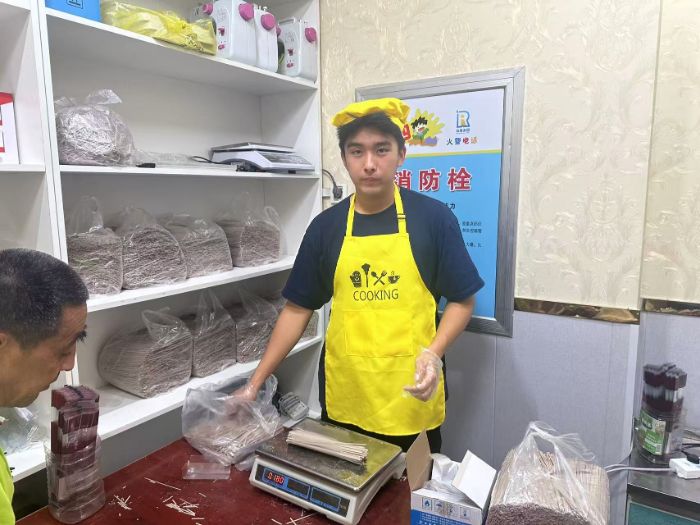 圖為實(shí)踐團(tuán)成員在分裝面條