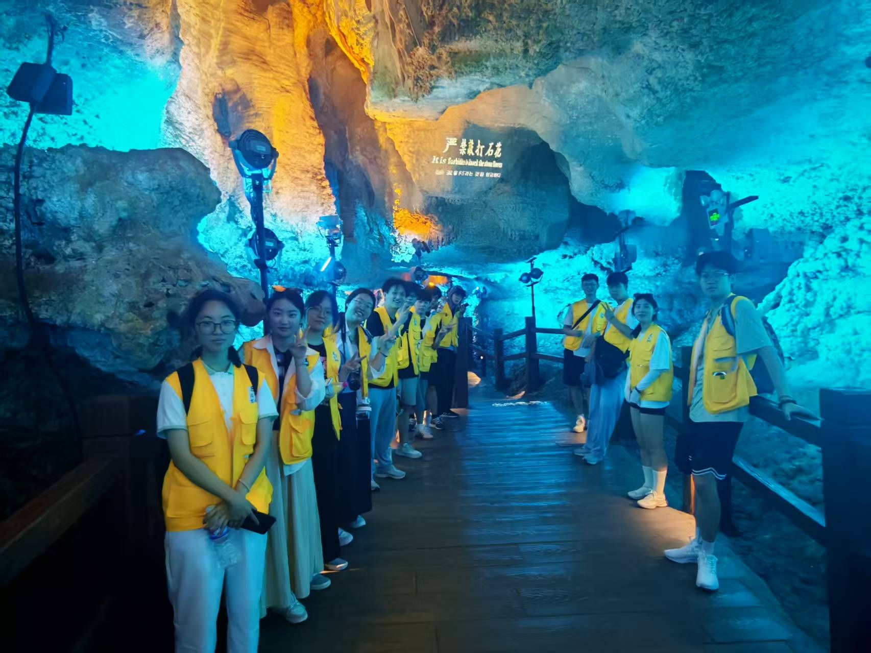 實(shí)踐團(tuán)首先來到了九天洞。在洞內(nèi),形態(tài)各異的鐘乳石在燈光的映照下如夢似幻,石筍、石柱錯(cuò)落有致。實(shí)踐團(tuán)成員們一邊驚嘆于大自然的鬼斧神工,一邊用記錄工具仔細(xì)收集各類景觀信息和空間結(jié)構(gòu)情況。之后,成員們結(jié)合數(shù)字方面的知識(shí),對這些信息的轉(zhuǎn)化進(jìn)行探討,旨在游客能輕松了解溶洞的地質(zhì)特點(diǎn)和形成故事。對于溶洞里的安全和游覽路線問題,實(shí)踐團(tuán)運(yùn)用數(shù)字標(biāo)識(shí)牌替代傳統(tǒng)標(biāo)識(shí)和智能導(dǎo)航系統(tǒng)等方式,讓游客在溶洞里的體驗(yàn)更加安全與方便。