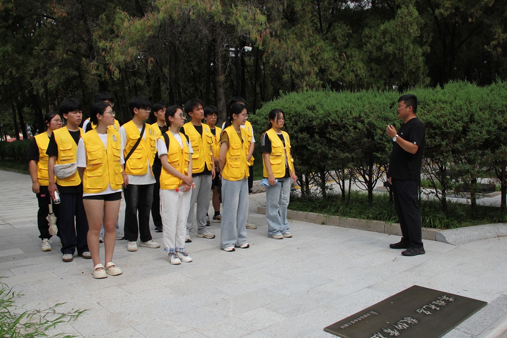 活動伊始,沂源縣革命烈士陵園管理中心主任襲富成向實踐團成員講解了陵園的歷史沿革與英烈事跡,成員們認真聆聽,并不時對重要內容進行記錄。隨后,實踐團成員來到何萬祥雕塑前,襲主任詳細介紹了何萬祥的英雄事跡。實踐團成員們一邊聆聽,一邊用手機對雕塑進行多角度拍攝,探討如何通過 3D 建模技術還原雕塑細節,未來嵌入線上展示平臺,讓人們在線上也能清晰感受雕塑所蘊含的英雄氣概。實踐團成員們還學唱了《英雄贊歌》,深刻體會到每一句歌詞中對英雄的贊美與緬懷。之后,實踐團成員們來到無名烈士墓前,深深地向無名烈士墓三鞠躬,以此表達對先烈們的深切緬懷和崇高敬意。