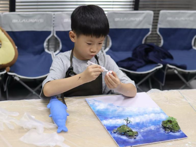 該團隊深度參與的“圍棋啟蒙小課堂”在每周三下午舉行,是實踐亮點。首堂課著重基礎規則,主講老師講解落子、提子后,實踐隊員隨即組織孩子們在小棋盤上進行“虎口”與“禁入點”的識別練習。面對一位常把棋子弄灑的小女孩,一位隊員創新性地提出小約定:“每正確放穩一顆棋子,就能點亮一顆小星星”,通過游戲化的方式,讓她在遵守規則中體會到樂趣。后續活動巧妙結合粘土手工,主題為“夏日印象”。隊員們與孩子們共同構思創作,捏制出冰淇淋、艷陽、小風扇等生動形象。活動中,一位內向的小女孩多次嘗試捏圓未果,面露沮喪。一位細心的隊員立刻上前,輕柔地握住她的小手,兩人一同揉捏塑形。合作之下,一塊形態雖不完美卻充滿童趣的“西瓜”逐漸誕生。小女孩眼中瞬間綻放的光彩,無聲訴說著創造帶來的巨大滿足與快樂。