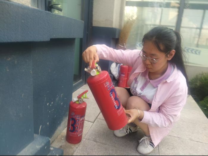 實踐團檢查滅火器日期,確保沒有過期并能夠使用,保障了居民的人身安全潔。針對樓道墻面非法張貼的小廣告,實踐團采用鏟刀配合清潔劑實施專項清除,恢復墻面原貌,有效遏制"城市牛皮癬"蔓延。