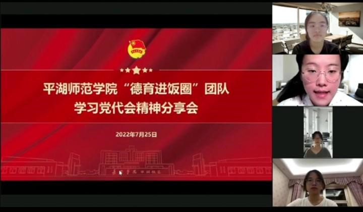 浙江省第十五次黨代會(huì)隆重召開,大會(huì)總結(jié)過往成就,展望美好未來,為全省擘畫發(fā)展藍(lán)圖。平湖師范學(xué)院(應(yīng)用技術(shù)學(xué)院)德育進(jìn)飯圈暑期社會(huì)實(shí)踐團(tuán)隊(duì)也組織研讀學(xué)習(xí),深刻領(lǐng)悟了黨代會(huì)精神與深遠(yuǎn)意義。為進(jìn)一步深入學(xué)習(xí)省第十五次黨代會(huì)精神,7月25日晚,本團(tuán)隊(duì)學(xué)習(xí)黨代會(huì)精神分享會(huì)通過線上會(huì)議形式正式舉行。德育進(jìn)飯圈團(tuán)隊(duì)負(fù)責(zé)人冷靜怡主持本次會(huì)議,團(tuán)隊(duì)全體成員參加了本次分享會(huì)。