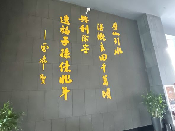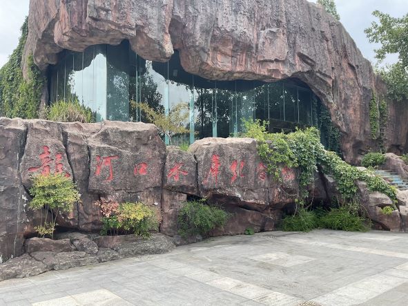 隨后實踐團隊進入,萬佛湖龍河口水庫紀念館在紀念館中了解河口抗洪救災的歷史。龍河口防洪工程史料館坐落于在物件堤壩正中間的壩中山腳下,是自然美景與自然風光緊密聯系的景觀園林性建筑工程。它的外立面是當下時興的人造假山制作工藝,目的在于具體表現一個地域的地質構造,史料館是仿全世界罕見的地質奇觀榴輝巖地質構造進行設計裝飾的,即把山、室外空間設計、空間設計、園林景觀結合一起。