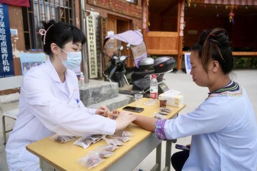 量血壓、脈診、針灸推拿、中藥茶飲......義診現(xiàn)場忙碌不停。29日、30日全天,服務團于歸柳村、栽麻社區(qū)開展義診服務。聽到村廣播關于義診的消息,當地群眾從四面八方趕來,很多還是在去年享受過貫眾碩博醫(yī)療團義診服務的患者。成員們充分發(fā)揮各自的專業(yè)特色和優(yōu)勢,為當地群眾提供耐心、細致的醫(yī)療服務。在義診的過程中,有一位老奶奶提及自己曾在去年住院治療過,但記不清當時住院的情況。在聽說她家中有住院的相關材料,團長司成主動來到患者家中,幫助患者尋找住院材料。經過王宇航專家半小時的針灸治療,患者感覺頭暈的癥狀有所緩解。