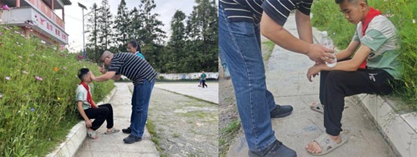 歸柳分隊一到達目的地,立即進入工作狀態(tài),為當地群眾提供醫(yī)療服務。支醫(yī)團從在歸柳小學服務的校第24屆研究生支教團成員處了解到五年級有一名男同學,前日突發(fā)左眼視物模糊,嘔吐,當天立即送往縣醫(yī)院診查,體格檢查發(fā)現(xiàn)左側上肢失去知覺,疑似右腦神經受損,經影像學檢查未發(fā)現(xiàn)異常,診斷為感冒出院。王宇航老師得知孩子的情況后,立即趕到學校為孩子檢查。經過檢查,王老師認為孩子不排除顱內病變的可能性,需要到大醫(yī)院進一步完善治療,但孩子的父親堅持要到十月務工結束返回后再帶孩子就診。考慮到孩子病情的復雜,王老師主動與孩子父親取得聯(lián)系,向其說明孩子的情況,經過王老師的耐心勸說,孩子父親態(tài)度有所松動。截至發(fā)布之日,孩子父親已經表示會聯(lián)系親戚帶孩子去凱里市就診,王老師的耐心細致最終打動了家長。