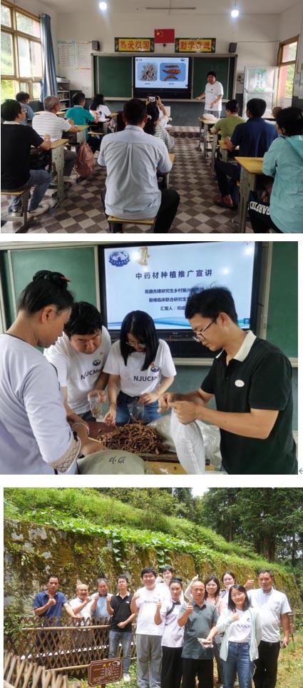 服務團赴歸柳小學開展基礎教育領域的第一項對口幫扶活動——向歸柳小學教師及村干部宣講中藥材種植技術,是對口幫扶致富創收領域的重要組成部分。服務團成員司成向到會來賓展示了本次推廣種植的四種中藥材,地黃、當歸、玉竹、防風,并對這四種藥材的種植技術展開了詳細的介紹。隨后,司成帶領大家來到百草園的藥田開展案例式現場教學,針對百草園種植地黃的田間管理向來賓做了演示。最后,服務團向來賓贈送中藥材種苗和中藥材種植宣講讀本。
