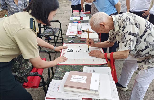 陣陣墨香指尖流,幽幽韻味心脾沁。“書海勤徑,學海泛舟”黨建活動現場,宣紙、毛筆、畫筆等文具被整齊的擺放在桌子上,一筆一墨,一橫一豎,一撇一捺……一副副寫滿祝福的紙張,一張張記下“心里話”的標簽,一幅幅生動形象的繪畫……寫的是漢字,報的是節訊,暖的是人心,通過紙張、繪畫、便簽傳遞心里話,心里話”彰顯驕傲“、心里話”堅定初心、“心里話”傳遞自信、“心里話”有群眾對黨對祖國最真摯最美好的祝福,群眾們一句句簡短卻飽含深情的話語,一聲聲樸實卻感人至深的祝福,流露出大家對黨對國家的滿腔赤誠和無限熱愛。
