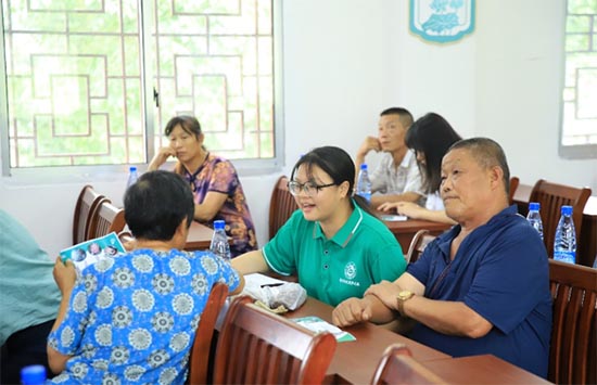 (村民們正在聚精會神地聽螞蟥科普講解)