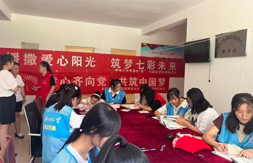 為使學生走出校園體會社會冷暖、走進社會、關愛社會,將愛心傳遞的同時充分發揮學生特長,為兒童打造一片暖心天地,7月6日,聊城大學藥學院青春閃“藥”,七彩筑夢志愿服務隊于聊城市姚莊小區舉辦以“播撒愛心陽光,筑夢七彩未來”為主題的社會實踐活動。