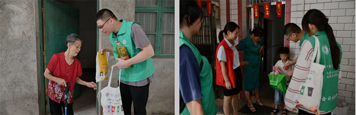 活動過程中,實踐團還在東升街道工作人員的帶領下分別前往街道管轄區內困難群眾劉有娣老人及留守兒童楊季儒小朋友家中進行看望。劉有娣老人自己身患殘疾,一個兒子精神殘疾,一個兒子三十多歲還沒結婚,留守兒童楊季儒小朋友爸爸媽媽常年在外打工,一直與奶奶相依為伴。實踐團成員帶著米、油、面和兒童文具等慰問品給她們送上愛心與溫暖,并叮囑老人保重身體,勉勵小朋友好好學習,天天向上。大家把關愛之情傳遞給了特殊困難群眾,用實際行動拉近與特殊困難群眾的距離,讓他們感受到來自黨和社會的關懷和溫暖。