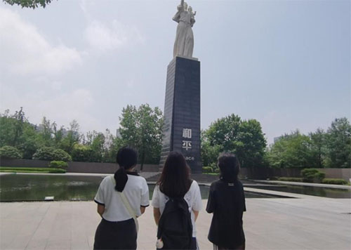 圖為實踐小隊成員瞻仰和平雕塑 通訊員 潘心儀 攝