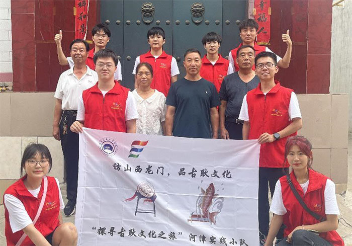 實踐小隊與“迎春”鑼鼓隊成員進行合影留戀圖