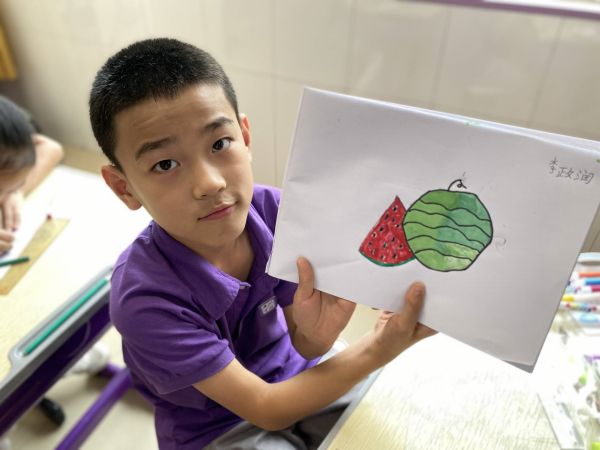 圖為李政潤同學展示自己的繪畫成果 通訊員 王森