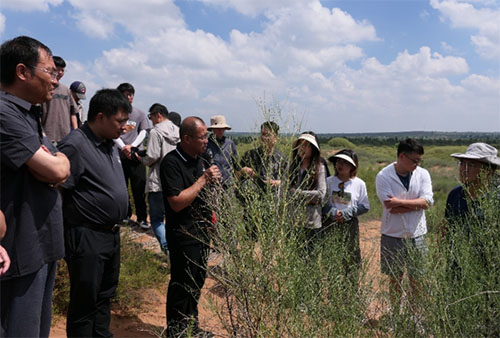 隨后,科考隊前往新街治沙站阿魯圖作業區。治沙站站長白增亮對伊金霍洛旗境內裸露沙地治理情況、草原生態修復治理等情況進行詳細介紹。20世紀五六十年代,新街治沙站管轄范圍森林覆蓋率不足8.9%,植被覆蓋率不到35%,出現了沙進人退的嚴峻局面。2016年,白增亮接任治沙站長帶領廣大治沙人逐年進行了植被恢復殘次林改造項目。在一代一代治沙人的努力下,據國有林地二類資源統計數據,2020年新街治沙站林業用地增加到28.96萬畝,森林蓄積量達9.27萬立方米,森林覆蓋率為82.91%,昔日荒漠變成了綠洲。