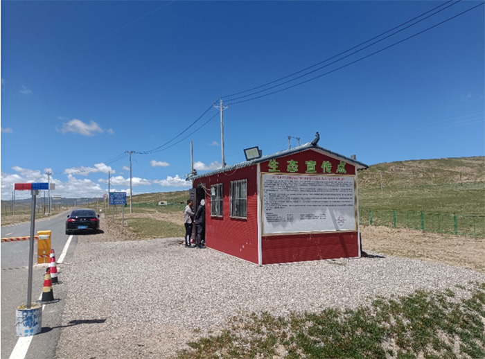 實踐隊一行于30日中午抵達三江源國家公園黃河源園區。三江源國家公園是中華人民共和國設立的第一個國家公園,它位于中國青海省,涵蓋了三江源地區的核心保護區和兩個重要支流的源頭。其中,黃河源園區是三江源國家公園內的一個重要園區,涵蓋了黃河的發源地區域。園區對于外來人員進行嚴格限制并設立生態保護宣傳點,未辦理相關手續者全部禁止進入。園區內部水波蕩漾、綠意盎然,野生動物悠然自得覓食。此外,園區內設立了自動氣象監測站用于實時監測園區內的氣象狀況。對于園區內退化的草場,管理局采用人工種植方式進行恢復,保障黃河源頭的生態環境質量。