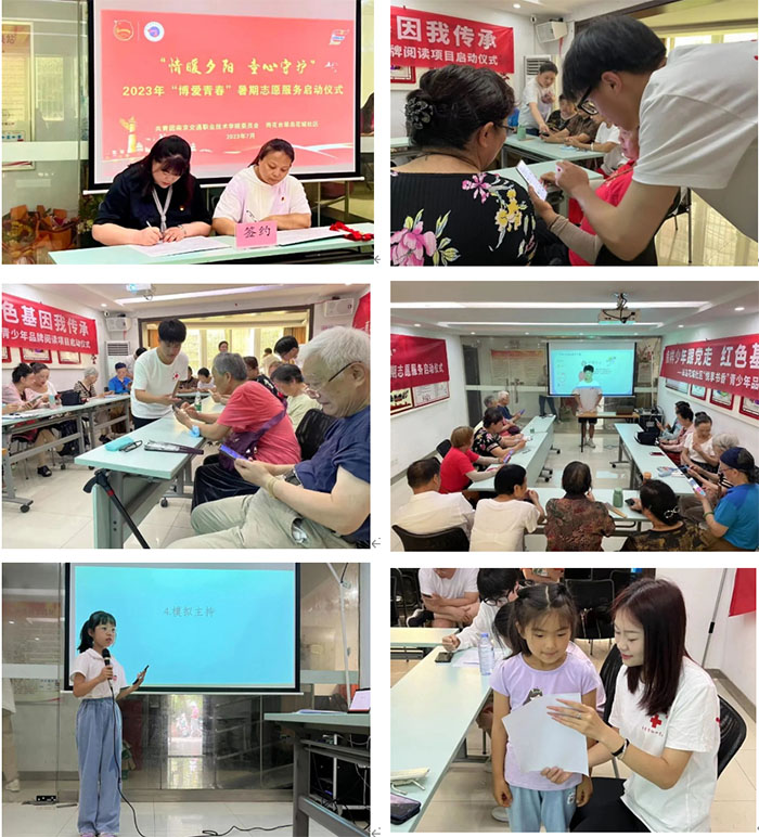 秉承“以真心換真情、用實干暖童心”理念,南京交院青年志愿者們以促進青少年健康成長、幫助老年人跨過“數字鴻溝”為重點內容,精心籌備“情暖夕陽童心守護”系列活動,旨在充分利用專業知識、發揮自身優勢,用實際行動助力志愿服務發展。圍繞”情暖夕陽”開展“智能手機使用”、“防詐騙宣傳”讓社區大部分老人感悟到現代科技迅速發展,立志要提高自我防詐意識。在開展的“小小主持人課程”、暑期夏令營讀書班的課程、手工美術課堂、兒童歌唱舞蹈課程、兒童應急安全教育、少兒美術創意繪畫等趣味課程中,幫助兒童提高學習興趣,發現美、認識美的同時也培養了少年兒童的健康心態,真正做到”童心守護“。