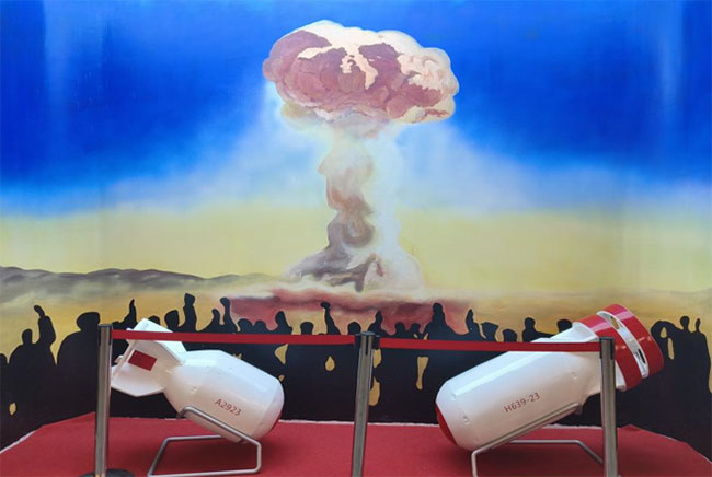 (圖為兩鄧故居內的核彈模型團隊成員 郝萍芬 攝)